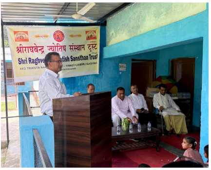 During the event, Mr. Avtar Singh commended the Trust for its contributions to social welfare and expressed gratitude to the Trust's President and Founder, Dr. Chander Mouli Raina, for this commendable initiative. In his remarks, Mr. Rashid Alam acknowledged the existence of numerous trusts across India and noted that some are established for personal interests; however, he highlighted the distinctiveness of Shri Raghavendra Jyotish Sansthan Trust’s social work and encouraged other organizations to similarly support underprivileged students for the broader benefit of society and the nation. School Principal Mr. Raj Kumar Thapa also offered his perspectives and extended thanks to the Trust. The Trust Secretary, Mr. Kusum Hindu, delivered a vote of thanks to the distinguished guests. The program was facilitated by the Trust's General Secretary, Dr. Prakash Shastri, and was attended by local dignitaries and school faculty members.